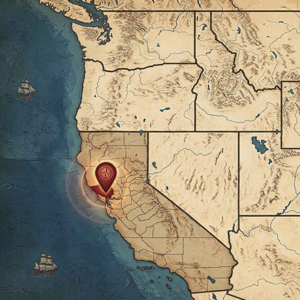 ナパバレーは、サンフランシスコの北40マイル、内陸40マイルに位置します。南北に35マイル(約56km)、最も広い地点で東西**5マイル(約8km)**の細長い谷です。